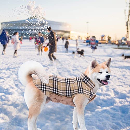 SlowTon Abrigo Perro Invierno, Cálido Forro Polar para Exteriores con Bufanda de Cuello Alto, Rayas Reflectantes, Chaleco a Prueba de Viento, Juegos Suaves para Mascotas
