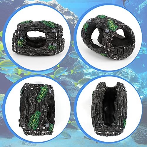 LuluDa 3Pcs Adorno de Acuario Accesorios de Acuario de Resina Pecera Adorno para Decoración de Acuario Pecera Diseño de Barril Roto Paisajismo de Cuevas para el Juego de Pescado y Camarón