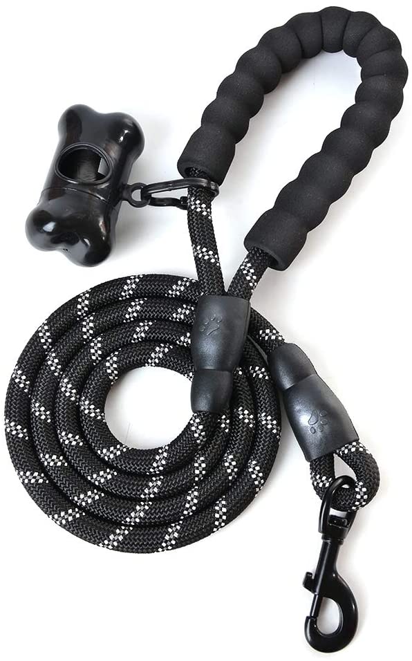 - 【Durable y Fuerte】 Esta correa para perros de cuerda es de nailon reforzado con un diseño tejido duradero y una capa de protección elástica que absorbe gran parte del impacto para que puedas caminar y entrenar a tu perro travieso sin que se lastime.