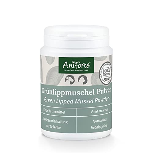 AniForte polvo de mejillón de labios verdes para perros y gatos 100g - Polvo natural de mejillones de labios verdes de calidad grasa, glicosaminoglicanos 3.3%, apoya las articulaciones