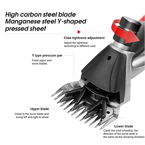 - MOTOR DE COBRE DE ALTA POTENCIA DE 850W - Hecho de un conjunto de cables de cobre resistente a altas temperaturas, con un consumo de energía ultra bajo, resistencia a temperaturas súper altas, salida fuerte, lo que permite a la máquina una vida útil más larga. Mientras tanto, con una potencia de 850W y una velocidad de 2400RPM, la operación ahorra tiempo y puede esquilar 5-10 ovejas una hora, lo que es adecuado para la cría familiar o la cría de pastos.