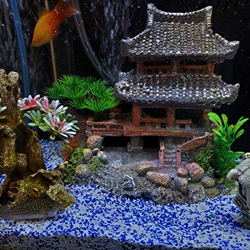 GaoF Decoraciones Templo clásico Castillo asiático Adornos de Resina Plantas Pequeñas Casas de Peces Escondite Decoración Escondites para Agua Dulce y Salada