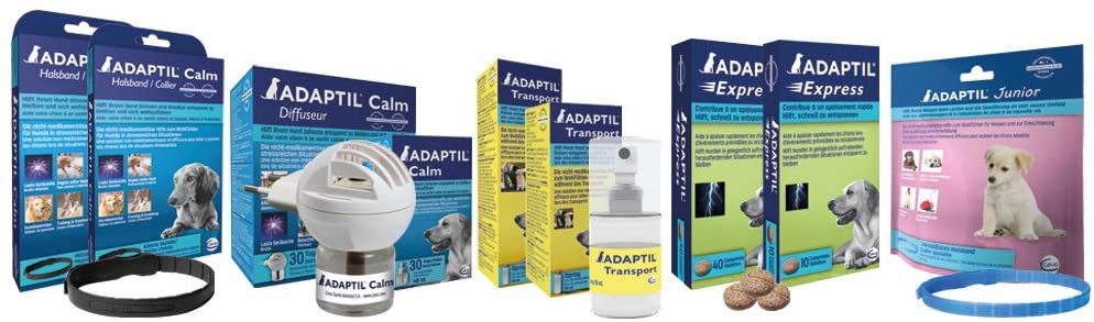 - ADAPTIL Express reduce rápidamente los signos de estrés producidos por miedo a los ruidos (tormentas, petardos, fuegos artificiales, fiesas), viajes o desplazamientos y visitas al veterinario o la peluquería.