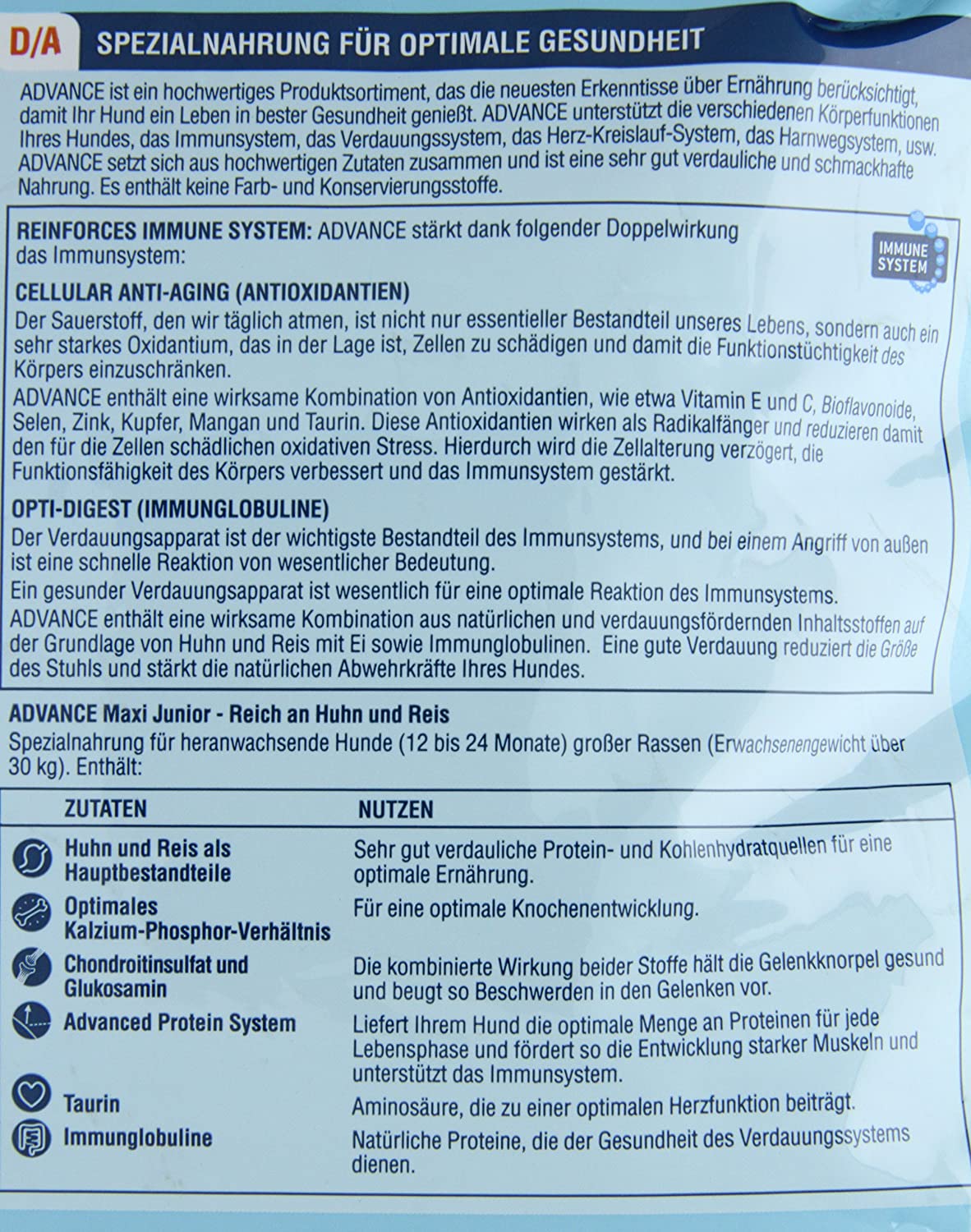 - Advance Maxi Puppy es un alimento de alta gama formulado para cubrir las necesidades nutricionales específicas de cachorros de razas grandes (más de 30 kg)