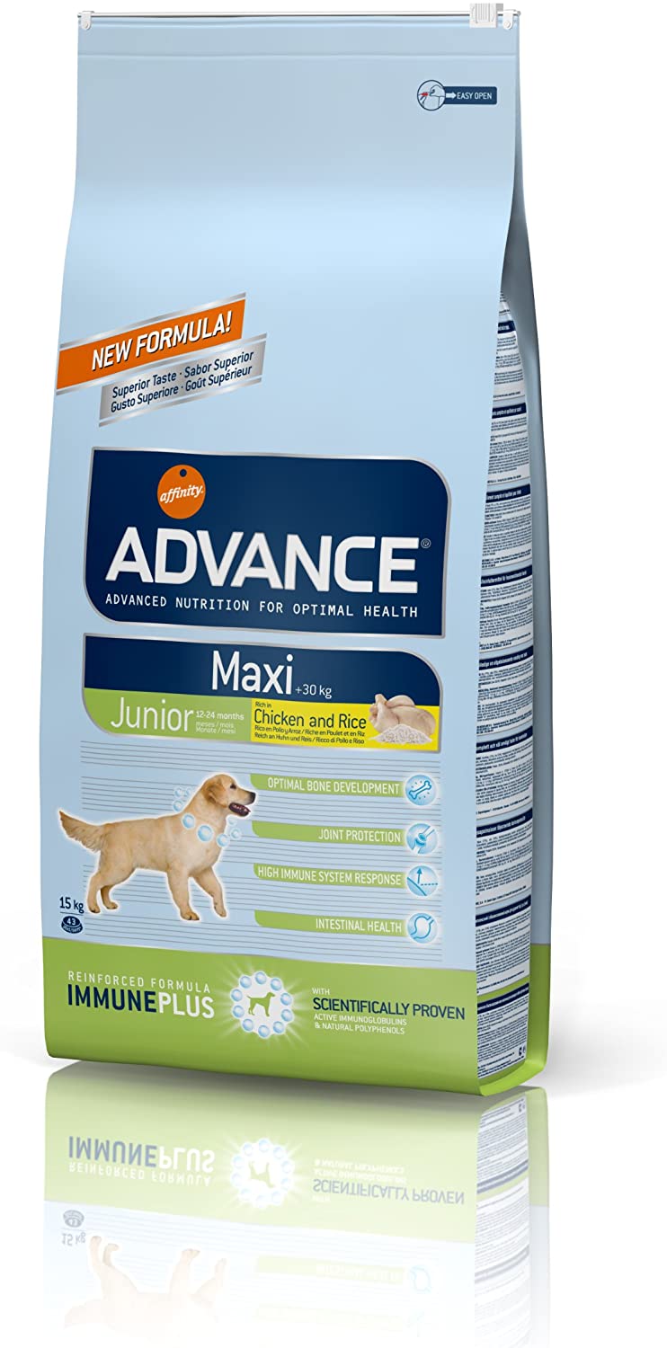 - ADVANCE Senior Maxi es un alimento de alta gama fácil de digerir formulado para cubrir las necesidades específicas de los perros de raza grande de edad avanzada.