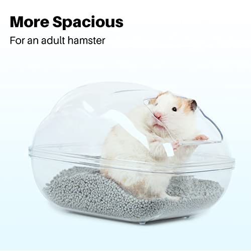 - ?【Diseño Transparente delicado】El baño Hamster muestra una construcción Transparente distintiva, visualmente espaciosa y brillante, es fácil y conveniente para que pueda ver a su mascota jugar adentro.
