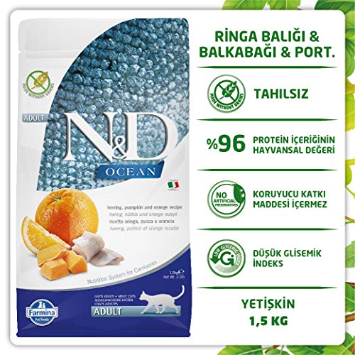 Farmina N&D Ocean - Calabaza de arenque y alimento seco para gatos de naranja 3.3 libras