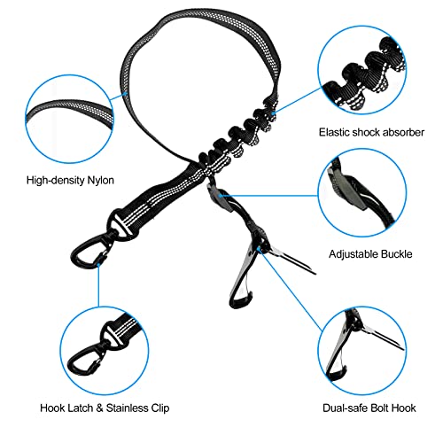 Newaner Cinturon Perro Coche Homologado, 3 en 1 Arnes Coche Perro Homologado Ajustable, Arnes Perro Coche con Amortiguación Elástica, Gancho de Seguridad Doble Aleación de Zinc Grueso y Hebilla Doble