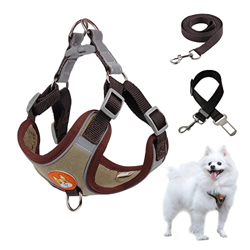 Jiuhuazi Arnés para Perros,Transpirable Ajustable para Perros Pequeños, Arnés para Perros con Cinturón de Seguridad para Coche, Viajes, Senderismo (L)