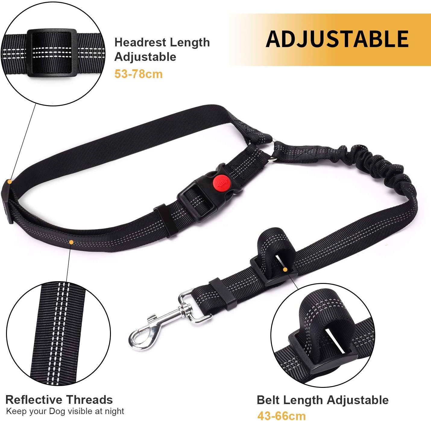 - LIBERTAD AJUSTABLE Y SUFICIENTE PARA PERROS: la longitud de la correa se puede ajustar de 43 cm a 66 cm. Su perro puede sentarse, pararse y acostarse, pero permanece seguro en el asiento trasero. Apto para perros pequeños y grandes.