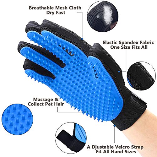 - ❤【Pet Guantes Cepillo】Guante de mascotas con correa ajustable de velcro, Se puede ajustar según el tamaño de la muñeca. Guantes manopla masaje con 180 consejos puntas de silicona de primera calidad eliminan eficazmente el pelo suelto, Polvo y suciedad de su mascota.