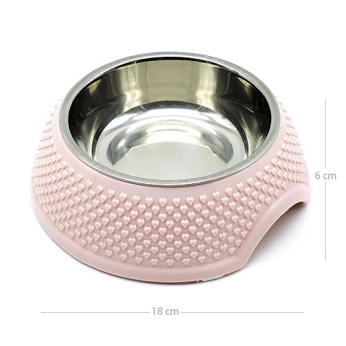 CABLEPELADO Comedero Metal y Caucho Redondo para Mascotas 18 cm (Rosa Claro)