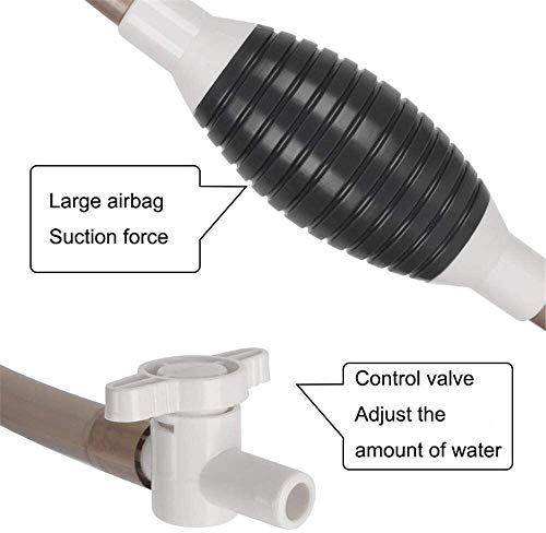 - 【Potente Función de Limpieza】- Se puede usar para limpiar grava, absorber suciedad, cambiar agua, lavar arena, succionar las heces. Fuerte potencia con succión suficiente para cambiar el agua, succionar los restos de comida y la caca de los peces del acuario rápidamente.Disminuye la acumulación de sustancia dañinas en su acuario mientras deja que su filtro del sistema de circulación de agua funcione mejor.
