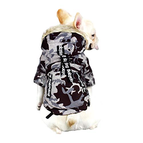 Babydog Abrigo Chaleco para Perro con Capucha, Forro Polar y Mangas, Cierre Corchetes, Modelo Camuflaje Militar (M, Marron Gris)