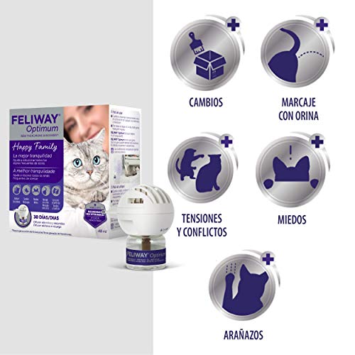 FELIWAY Optimum - Nueva Generación de Feromonas - Soluciona todos los signos de estrés del gato - Arañazos, miedos, cambios, marcaje con orina, conflictos entre gatos - Difusor + Recambio 48ml