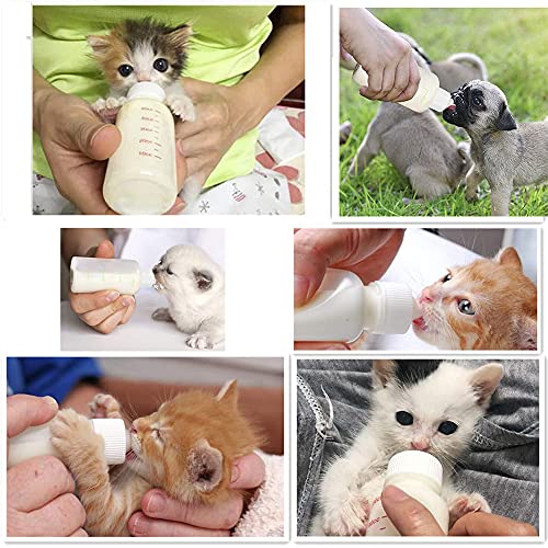 - Biberones de alimentación exprimibles: biberones para cachorros de gatito de 60 ml para amamantar, biberón de leche para animales pequeños fácil de limpiar y fácil de apretar, saludable y duradero, seguro y no tóxico, se puede reutilizar, fácil de controlar la ingesta de leche para evitar una ingesta demasiado alta o baja , provocar diarrea.