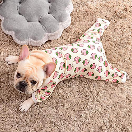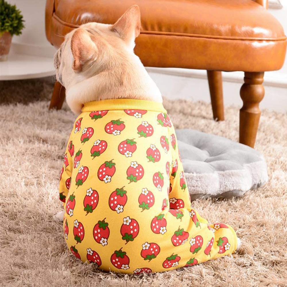 STKJ Pijama De Perro Pequeño, Mono De Cachorro, Traje De Mono Lindo Y Cálido, Ropa para Mascotas, Pijama De Algodón, Mamelucos, Ropa De Cuatro Piernas,Amarillo,L