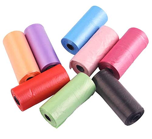 - Bolsas colores de caca de 100 rollos,cada rollo color tiene 15 bolsas,total 1500 bolsas. Tamaño: 33 x 22 cm.