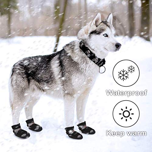 Havenfly 4PCS Botas Protectoras para Perros,Zapatos Impermeables para Perros con Correas Ajustables,Senos Antideslizantes Reflectantes y Robustos,Diseñados para Perros Medios y Grandes