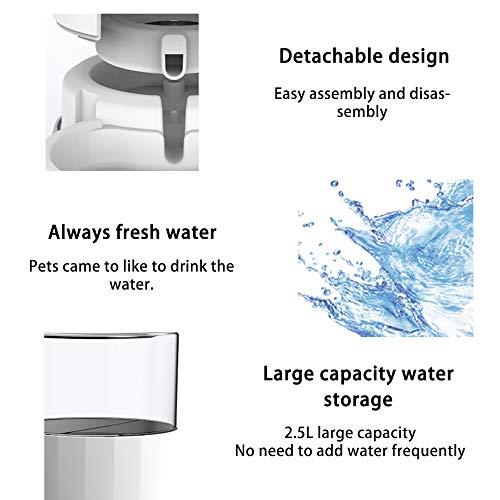 - Gran capacidad de 2,5 litros: gran capacidad sin rellenado frecuente, puede satisfacer las necesidades de agua de perros pequeños o gatos grandes de 7 a 15 días. No te preocupes por alimentar el agua de tu mascota cuando trabajes tarde o viajas distancias cortas.
