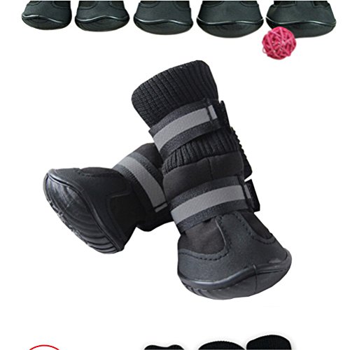 AQH Zapatos Perro, 4 Pcs Zapatos Impermeables para Perros, con Banda Reflectante Suelas de Goma Antideslizantes Resistentes (5#, Negro)