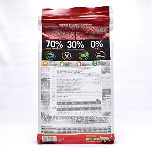 - SIN CEREALES : Alto contenido en carne fresca (63%) y verduras, frutas, aceites y hierbas silvestres