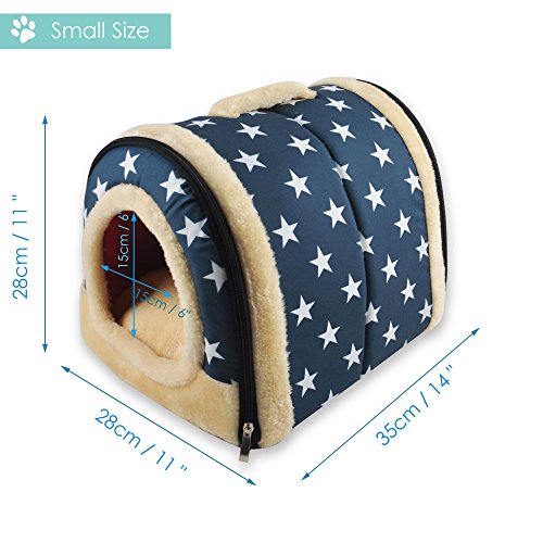 - Dimensión total de esta cama para gatos / perros: 50 * 45 cm, tamaño de entrada: 27L x 19H cm, adecuado para todos los gatos, cachorros y perros pequeños. Tus mascotas pueden disfrutar del espacio suficiente para estirar el cuerpo y disfrutar de esta acogedora casa en forma de carpa.