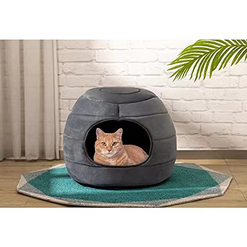 - Casa para perros y gatos dos en uno, con cama: proporciona un cálido nido para tu mascota, contiene un suave cojín interior de felpa gruesa. La mayor comodidad para tu mascota, diseño exclusivo con forma de iglú que, en segundos, puedes transformarse en una cama sofá abierta.