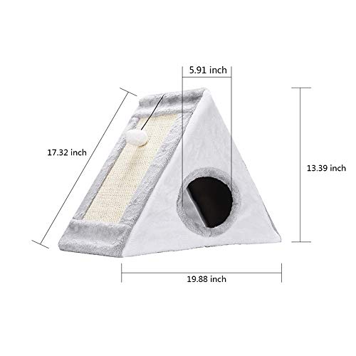XianghuangTechnology Cama cueva para gatos 2 en 1 con poste de rascar cueva triangular para gatos, completamente plegable, casa para gatos/cuevas condominio interior/exterior (gris)