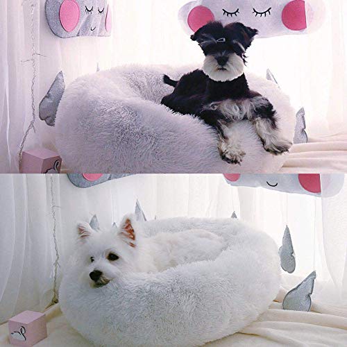 - 【Cesta para Perros en Forma de Donut】- El borde elevado crea una sensación de seguridad y proporciona soporte para la cabeza y el cuello, Redondo felpa sofá hay una especie de protección y mimos Se siente como proporcionar una sensación de seguridad suficiente para la mascota, mientras que el relleno súper suave ofrece alivio de dolores en las articulaciones y los músculos y proporcionar un sueño profundo más cómodo.