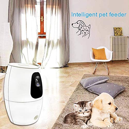 BMYUK Alimentador Automático Inteligente Mascota WiFi Control Remoto Aplicación Alimentación Soporte Monitor Video Dispensador Tratamiento Cámara para Perro Gato (Enchufe de la UE)