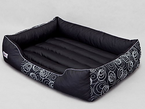 Hobbydog Cama de Lujo para Perro, Fabricada con Pana Duradera, tamaño Grande, Color Negro con círculos