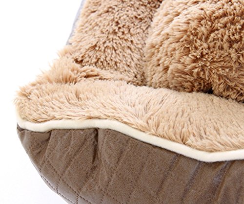 FEANDREA Cama para Perros, Sofá para Perros, Cesta para Perro,con Cojín Extraíble, 80 x 70 x 25 cm, Marrón y Beige PGW06YC