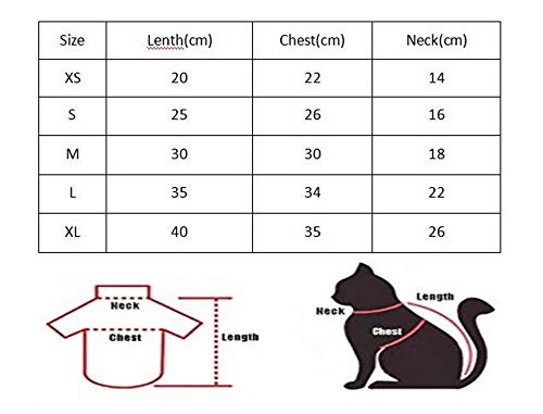 - 【Información sobre el tamaño】 El tamaño de la ropa del gato debe seleccionarse de acuerdo con el peso de la mascota, la medida del pecho, el cuello y la espalda. Confirma la talla y compra. La ropa de gato está hecha a mano. La tela a veces estará agotada, si este es el caso, nos comunicaremos con usted a tiempo, preste atención al cheque por correo.