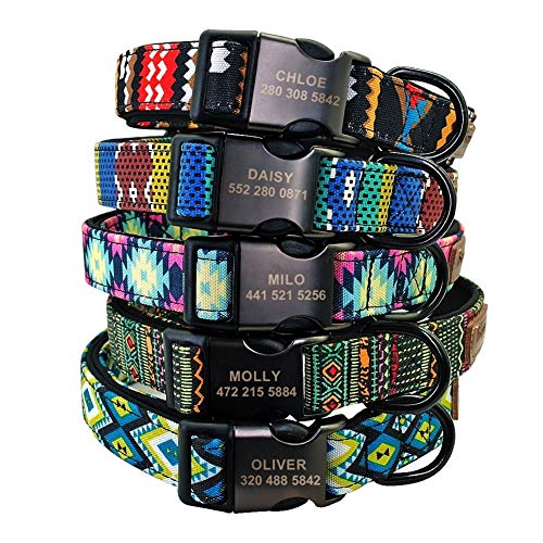 SJZS Collar de Perro Collar de Perro Personalizado con Correa de Nylon for Mascotas ID Personalizado Collares de Colores Caminar Correa Impreso Perros Pequeño Mediano for Perros Grandes