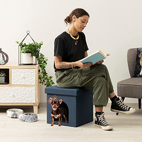 Baroni Home Caseta para perros personalizable, caseta de gato personalizable, puf plegable para perros y gatos personalizable, medidas 38 x 38 x 38 cm azul