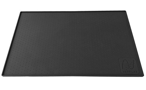 Happilax Alfombrilla Perro y Gato en Silicona Antideslizante para comedero y Bebedero, Negro, 60 x 40 cm, L