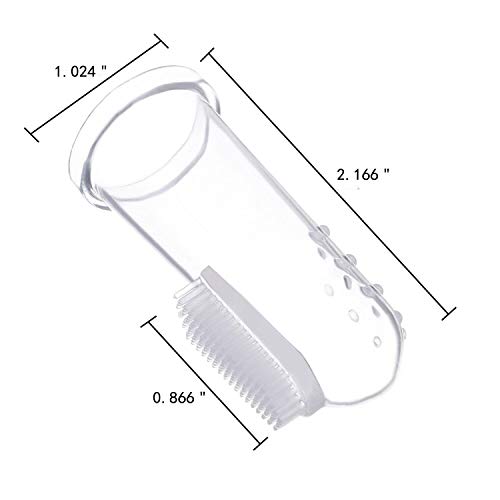 - Cepillo de dientes de silicona suave: el cepillo de dientes está hecho de silicona suave, segura y no tóxica. Cepillo de dientes de dedo es de aproximadamente 5,5 cm de longitud y 2,5 cm de diámetro, para adaptarse a la mayoría de los dedos. El área de cepillado mide aproximadamente 1 * 2 cm, la longitud es de aproximadamente 0,4 cm.