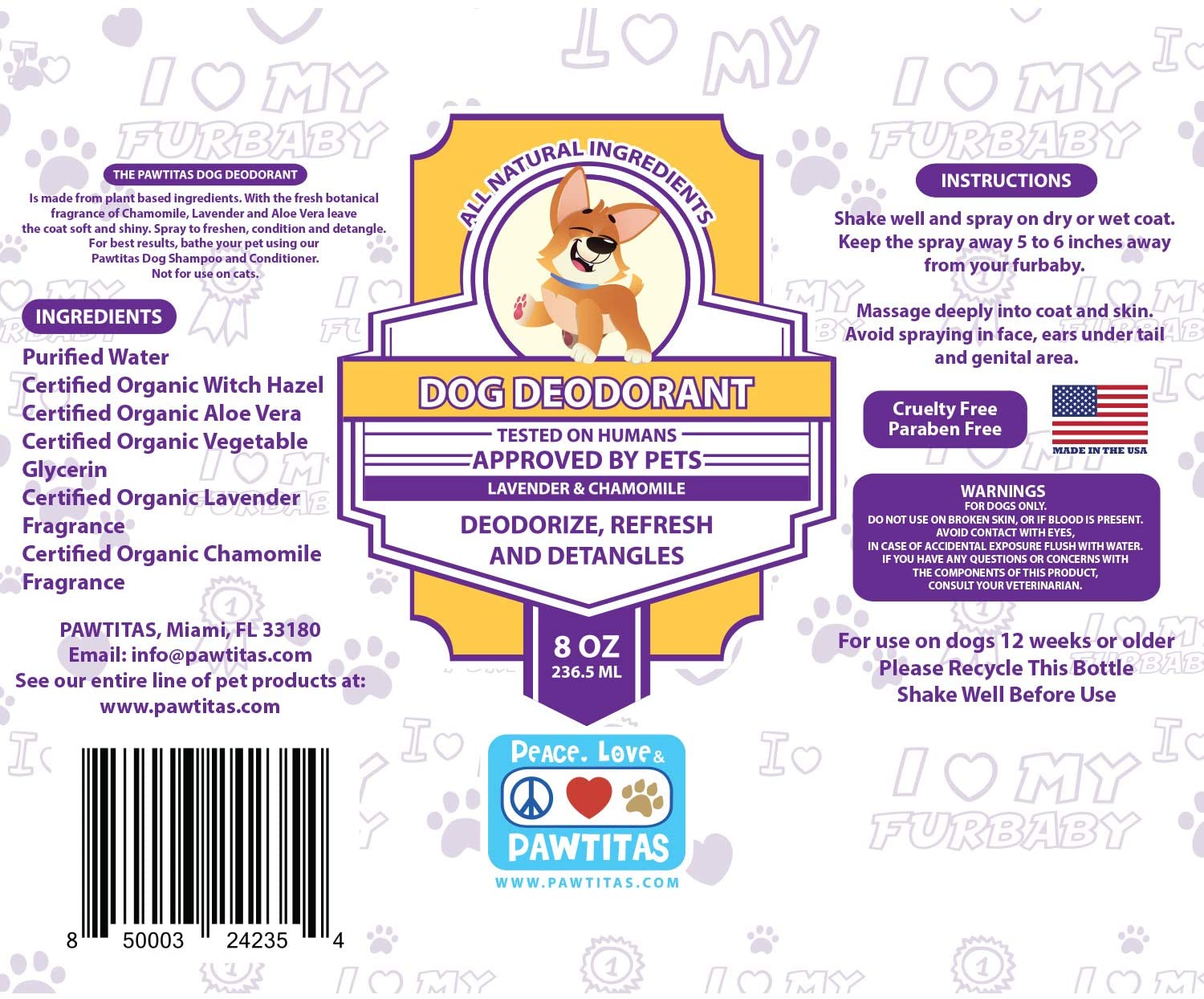 - Experiencia en el cuidado del cabello: El desodorante orgánico de lavanda y manzanilla para perros Pawtitas está hecho para mantener a tu cachorro oliendo fresco y sintiéndose bien gracias a sus aromas de larga duración.