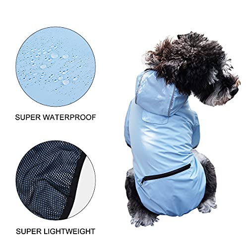 Dociote Chubasquero para Perros con Bolsillo, Ligero Impermeable Abrigo Perros con Capucha Reflectante Ajustable Impermeable para Perros Pequeños y Medianos Azul L