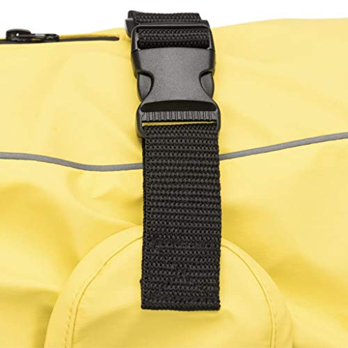 Mantenga a su perro protegido del frío, la lluvia y el viento con nuestro chubasquero perro 55 cm. Hecho de un tejido impermeable de alta densidad y de alta calidad, este chubasquero tiene forro de poliéster en todos los costados para mayor comodidad y protección. La cremallera frontal es resistente al agua y el cuello alto protegerá al perro de la lluvia. Las costuras están completamente selladas para mayor protección. Viene con una hebilla en el cuello y una cinta reflectante en la espalda.