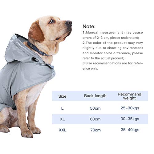 - 【DESIGH REFLECTIVE STRIP】: la chaqueta para la lluvia diseñada con un tipo reflectante que garantiza que sus mascotas se puedan ver de noche / en la oscuridad.