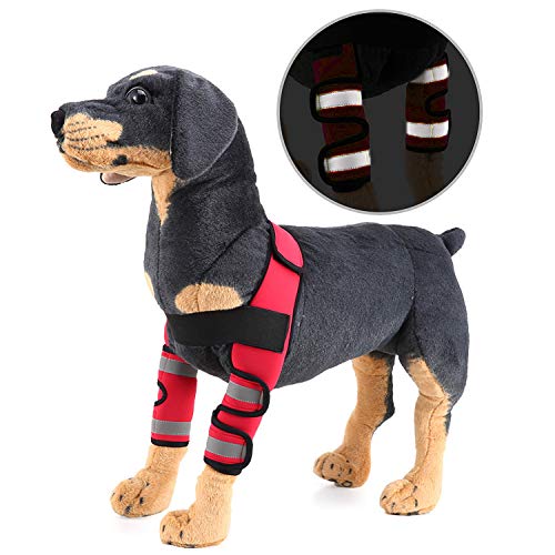 - SUAVE Y CÓMODO Y SEGURIDAD - Hecho de neopreno, tejido de goma esponja, suave y resistente a los golpes, puede cuidar mejor las heridas de los perros y aliviar el dolor de los perros, y no afecta la movilidad de su perro también. Con correa reflectante, puede observar al perro por la noche, lo que es más importante, proporcionar visibilidad y seguridad en la oscuridad.