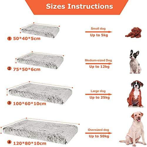 - Múltiples tamaños: la cama grande para perro mide aproximadamente 10 cm de grosor, hay 5 tamaños disponibles, incluyendo: S 30 x 40 x 5 cm, M 50 x 40 x 5 cm, L 75 x 50 x 6 cm, XL 100 x 60 x 10 cm, XXL 120 x 80 x 10 cm. La cama para mascotas funciona muy bien como una cama independiente para perros pequeños, medianos y grandes. Las mascotas tienen suficiente espacio para extenderse cómodamente. Mide el cuerpo de tu mascota antes de realizar el pedido.