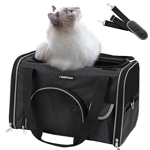 rabbitgoo Transportin Gato Perro Transportín Lavable Plegable Bolsa Transportin Transpirable con Colchón Suave Portador de Viaje con Correa de Hombro Ajustable 42x27x27cm Negra (Máximo 6kg)