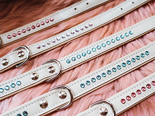 HHH House of Horses - Collar de piel para perro con cristales Swarovski, 40 cm, color aguamarina