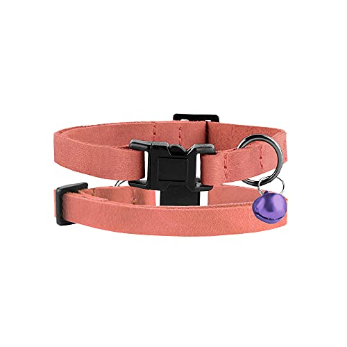 Murom Breakaway Collar de gato de cuero suave ajustable para mascotas gatitos collares con campana rosa marrón azul verde rojo (melocotón)