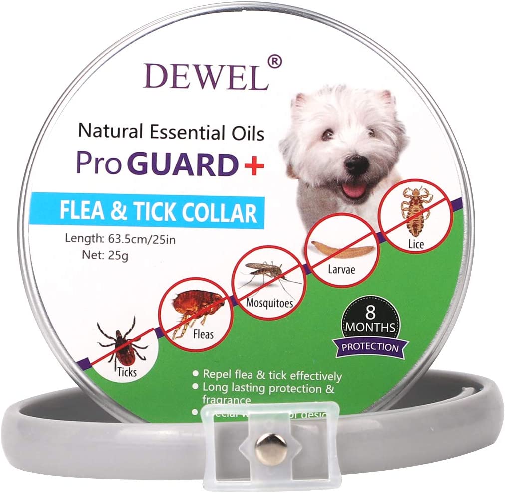 DEWEL Collar Antiparasitos para Perro,Gato Pequeño Mediano Grandes contra Pulgas, Garrapatas y Mosquitos, 8 Meses(para Perros)