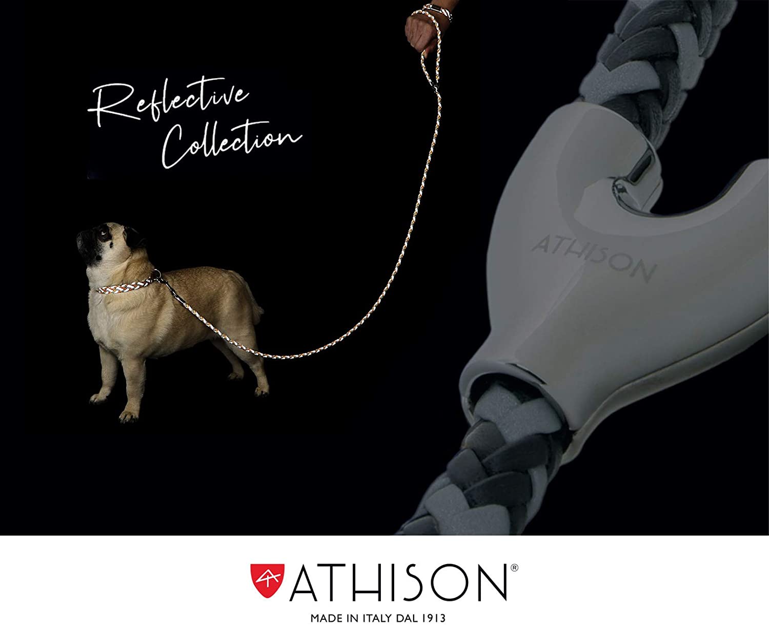 Athison - Juego de Collar y Correa Reflectantes, pequeño para Perros de Talla pequeña y Media, Trenzados en Cuero y Tejido Reflectante, Color marrón Oscuro