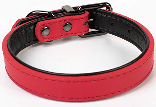 Puccybell Collar para Perros 2 Coloreado con Cuero, Collar clásico en Colores Contrastantes para Perros pequeños, medianos y Grandes HB004 (M, Rojo)